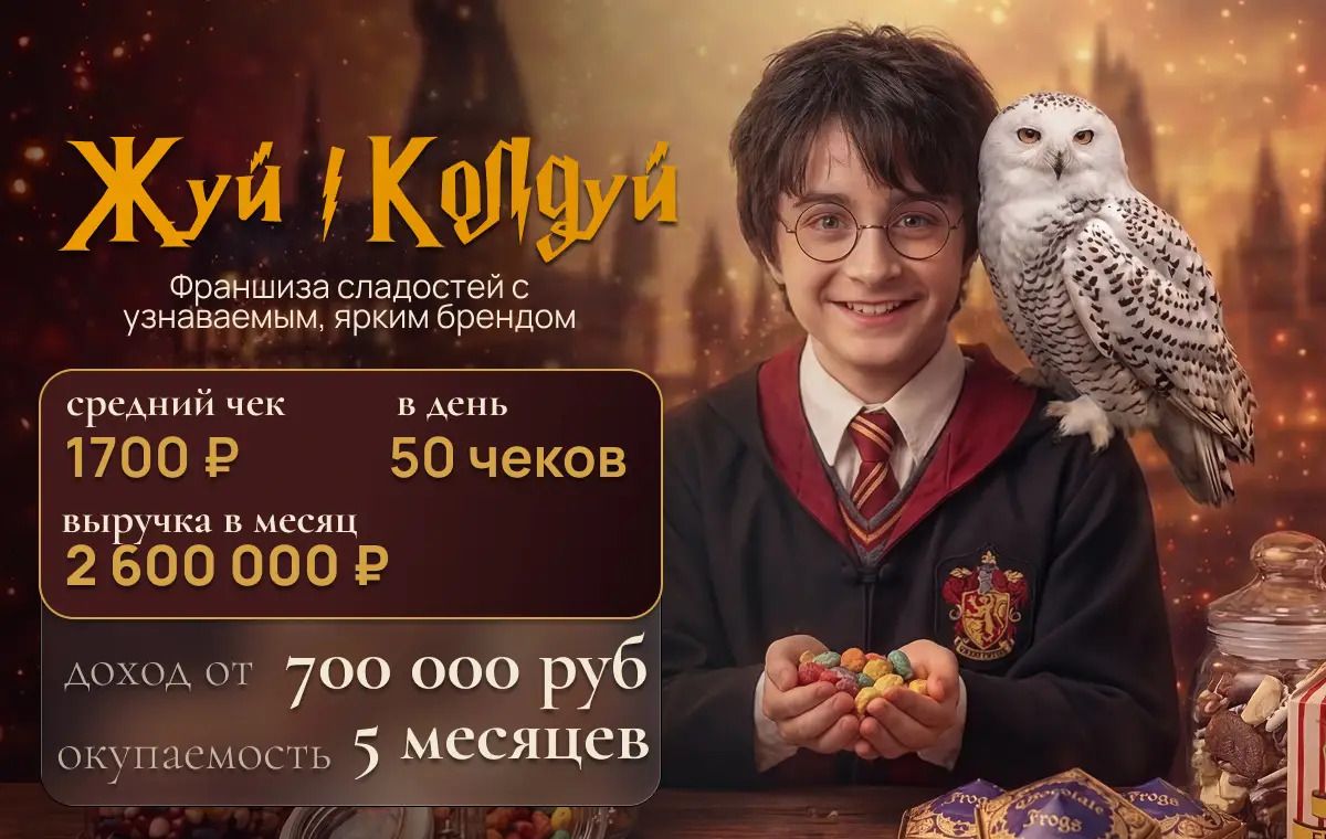 Недорогой, интересный бизнес, который не требует больших расходов и постоянного присутствия на точках продаж. Компания прописывает в договоре гарантию окупаемости. Для старта понадобится от 299 000 рублей, но компания даёт рассрочку под 0% годовых.