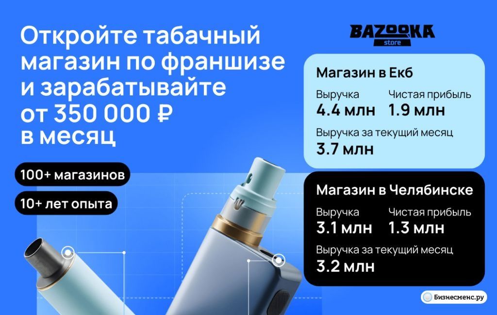Недорогой, интересный бизнес, который не требует больших расходов и постоянного присутствия на точках продаж. Компания прописывает в договоре гарантию окупаемости. Для старта понадобится от 299 000 рублей, но компания даёт рассрочку под 0% годовых.