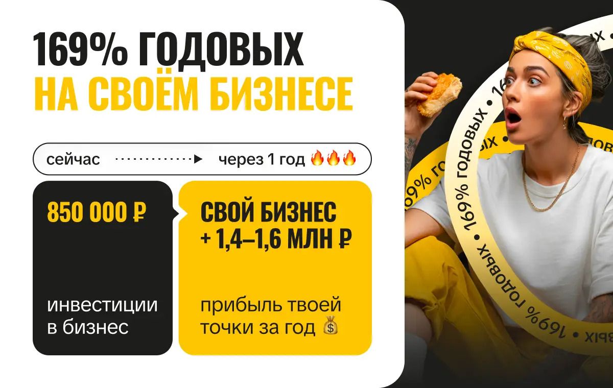 Недорогой, интересный бизнес, который не требует больших расходов и постоянного присутствия на точках продаж. Компания прописывает в договоре гарантию окупаемости. Для старта понадобится от 299 000 рублей, но компания даёт рассрочку под 0% годовых.