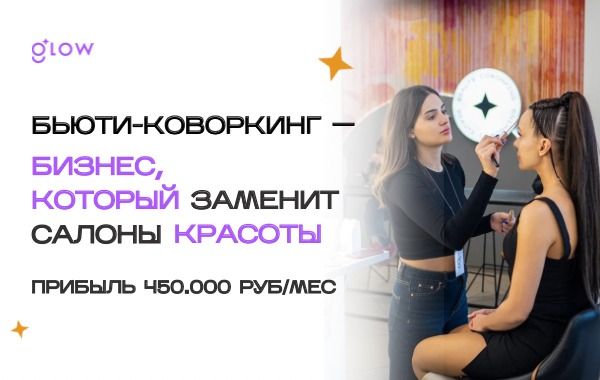 12. Glow — франшиза на рынке услуг красоты. Занимаются коворкингами для парикмахеров, барберов, специалистов по маникюру и педикюру, бровям и ресницам и других специалистов бьюти-индустрии. Среди сильных сторон — постоянные клиенты, старт до 2 месяцев, небольшие затраты на персонал (нужно всего 2 администратора) и гибкий формат (можно сдавать места на час, на день и на месяц). Общая прибыль со всех направлений за месяц —- от 450 тыс. рублей, вложения в открытие — от 3,4 млн рублей.
