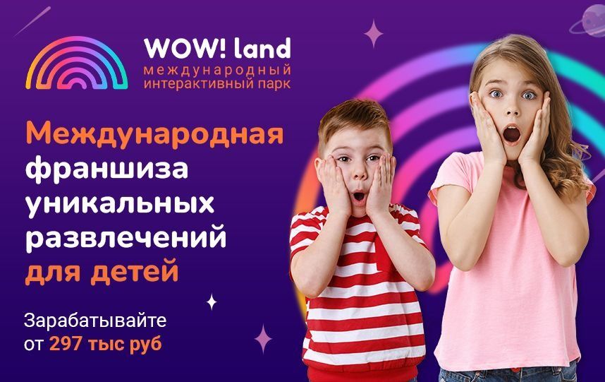 18. WOWLand — франшиза интерактивных развлекательных комнат для детей. Комнаты оборудованы проекторами, лазерами и технологией дополненной реальности. Уже работают 70 комнат по РФ, в Беларуси, Казахстане, Молдове. Средняя чистая прибыль — от 297 тыс. рублей. Управляющая компания помогает найти помещение, сделать ремонт, установить и подключить оборудование. Вложения в открытие одной комнаты — от 2,1 млн рублей, полная окупаемость за срок до 8 месяцев.