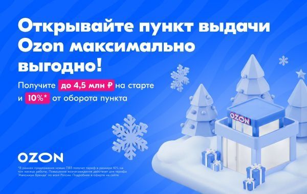 6. С франшизой Ozon вы сможете открыть свой пункт выдачи заказов. Управляющая компания поддерживает во всём. Помогают выбрать локацию, подключить рекламу так, что заказов будет достаточно с первого дня. Всему обучат в своей внутренней академии для управляющих ПВЗ. Также, по франшизе предусмотрен гарантированный доход — до 4,5 млн рублей. В Ozon нет паушального взноса и роялти, а работать можно на площади от 20 кв. м. В среднем ПВЗ приносит управляющему от 100 тыс. рублей чистыми ежемесячно.