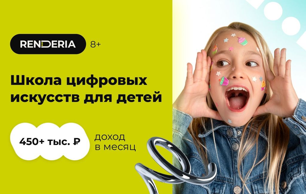 19. RENDERIA — франшиза школы цифровых искусств. Обучают нейросетям, графическому дизайну, анимации, созданию сайтов, маркетингу и ещё 10+ направлениям. По бизнес-модели работают более 50 филиалов в РФ. Средняя прибыль для одного филиала RENDERIA — 450 тыс. рублей в месяц, вложения в открытие — от 350 тыс. рублей.