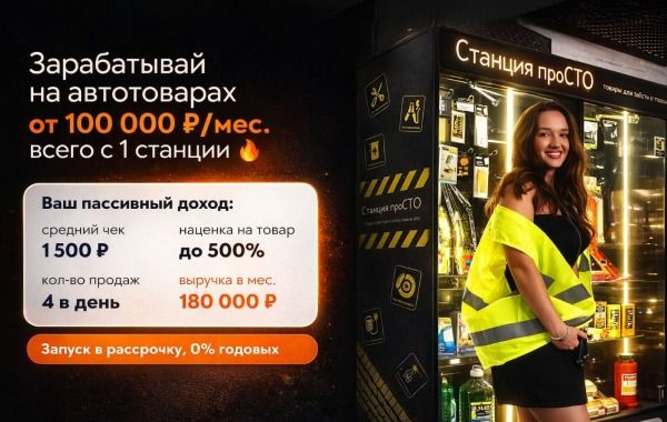 32. СтанцияПросто — франшиза вендинговых аппаратов с автотоварами и автоаксессуарами. В ассортименте 100+ самых востребованных позиций: зарядки, ароматизаторы, моторные масла, омывайки, инструменты и др. Для владельца это пассивный доход, на управление бизнесом нужно до получаса в неделю. Франчайзи помогают найти локацию, обеспечивают поставки товара, и гарантируют окупаемость и плановое количество продаж по договору. Вложения в открытие одной станции — от 220 тыс. рублей.