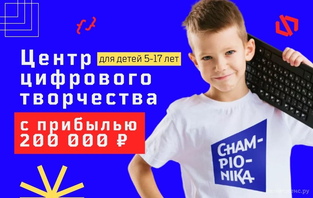 9. Championika Digital — франшиза образовательных центров по компьютерной грамотности, игровому программированию, созданию игр, приложений и сайтов, 3D-моделированию и видеоблогингу. Проект международный, более 750 филиалов открыты в РФ и по всему миру. Бренд получал награды от Forbes как лучший в своей нише. Также компания официально поддерживает Ozon. Прибыль одного небольшого центра — от 200 тыс. рублей. Вложения — от 500 тыс. рублей, и это уже с паушальным взносом.