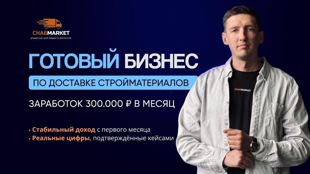 30. СнабМаркет — франшиза доставки стройматериалов до объекта клиента. Услуга очень востребована у строительных компаний, ремонтных бригад, частных прорабов. Сильное конкурентное преимущество — при любом объёме заказа в стоимость включается подъём на этаж. Средняя наценка на стройматериалы от СнабМаркет — от 10%. Дополнительно, вы зарабатываете за счёт корпоративной скидки на строительные материалы от крупных сетей — те же 10% в среднем. Общая чистая ежемесячная прибыль от 300 тыс. рублей, вложения в открытие — от 310 тыс. рублей.