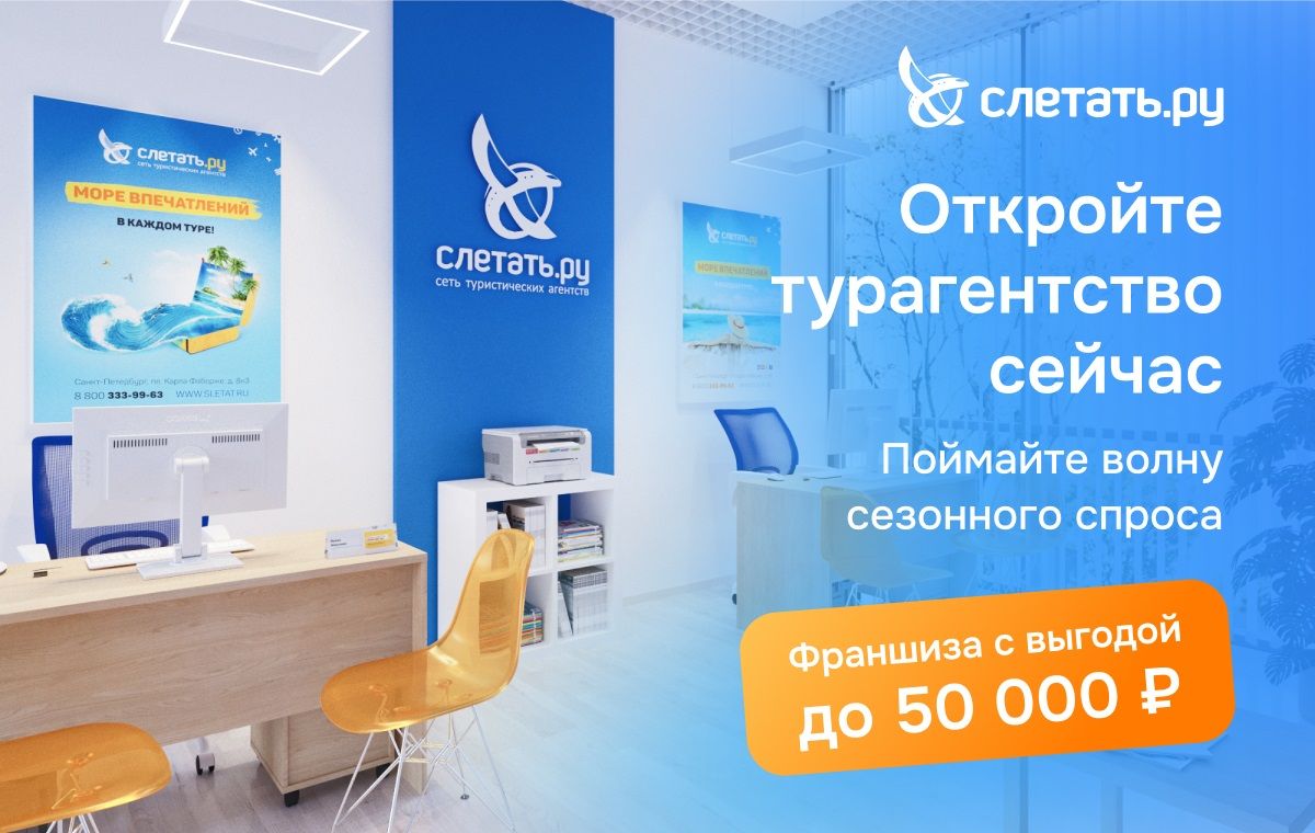 У франчайзинговых турагентств показатели лучше среднерыночных: средний чек выше на 22%, туристов больше на 30%, глубина бронирования - 52 дня (в феврале уже покупают на майские праздники и июнь). Вместе с франшизой вы получите помощь с подбором помещения, дизайн-проект, повышенное агентское вознаграждение. Прибыль - от 400 000 рублей. А сейчас ещё и рост спроса в преддверии туристического сезона.