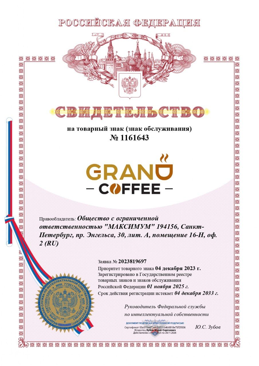 Товарный знак «GRAND coffee» официально зарегистрирован!