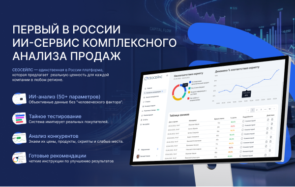 Так был создан «умный робот» — платформа СеоСейлс. Она автоматически проверяет качество работы менеджеров компании, анализирует конкурентов и сама пишет идеальные скрипты продаж, обучаясь на успешных диалогах. Для владельца бизнеса это — еженедельный отчёт с конкретными пунктами: «что сломалось и как именно это починить», чтобы увеличить выручку.
