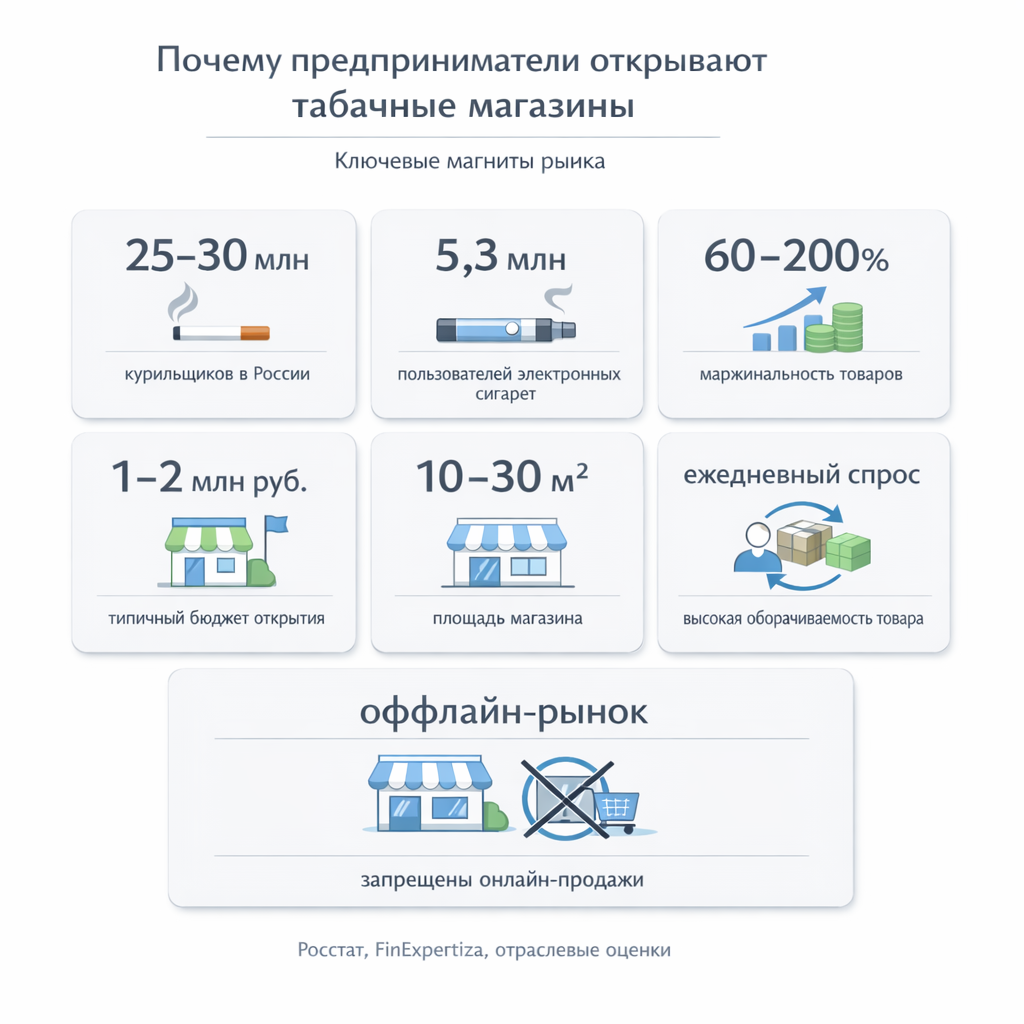 Франшизы табачных магазинов в РФ: актуальные условия в 2026 году
