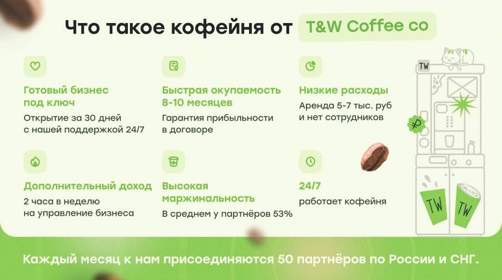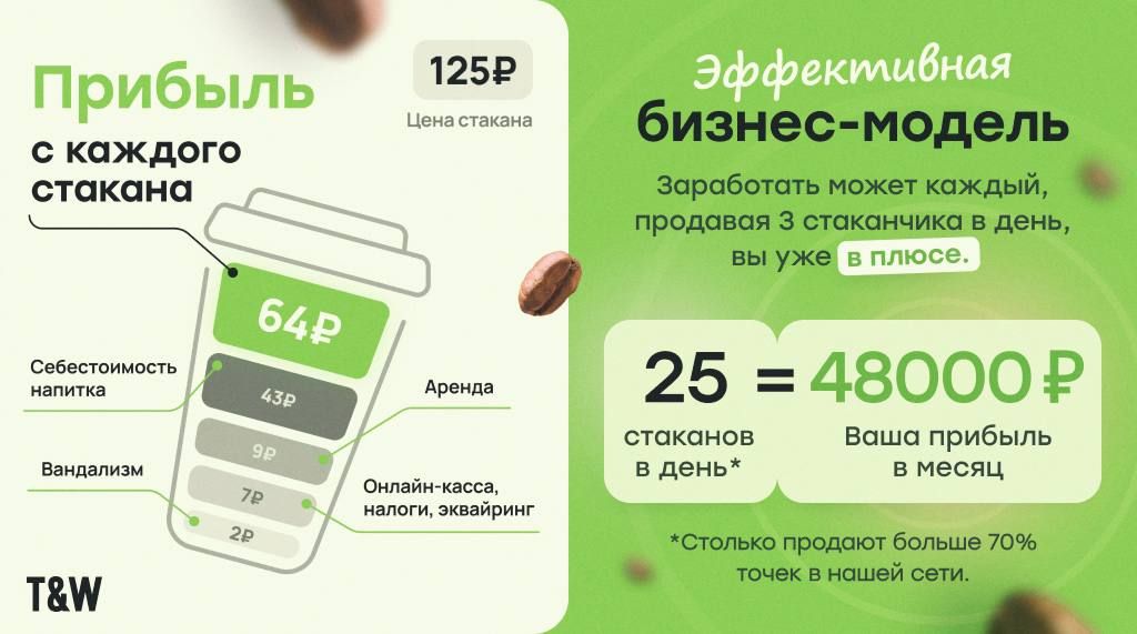 Решили с женой начать своё дело в кофейном бизнесе. Выбор пал на компанию T&W. И мы не прогадали!