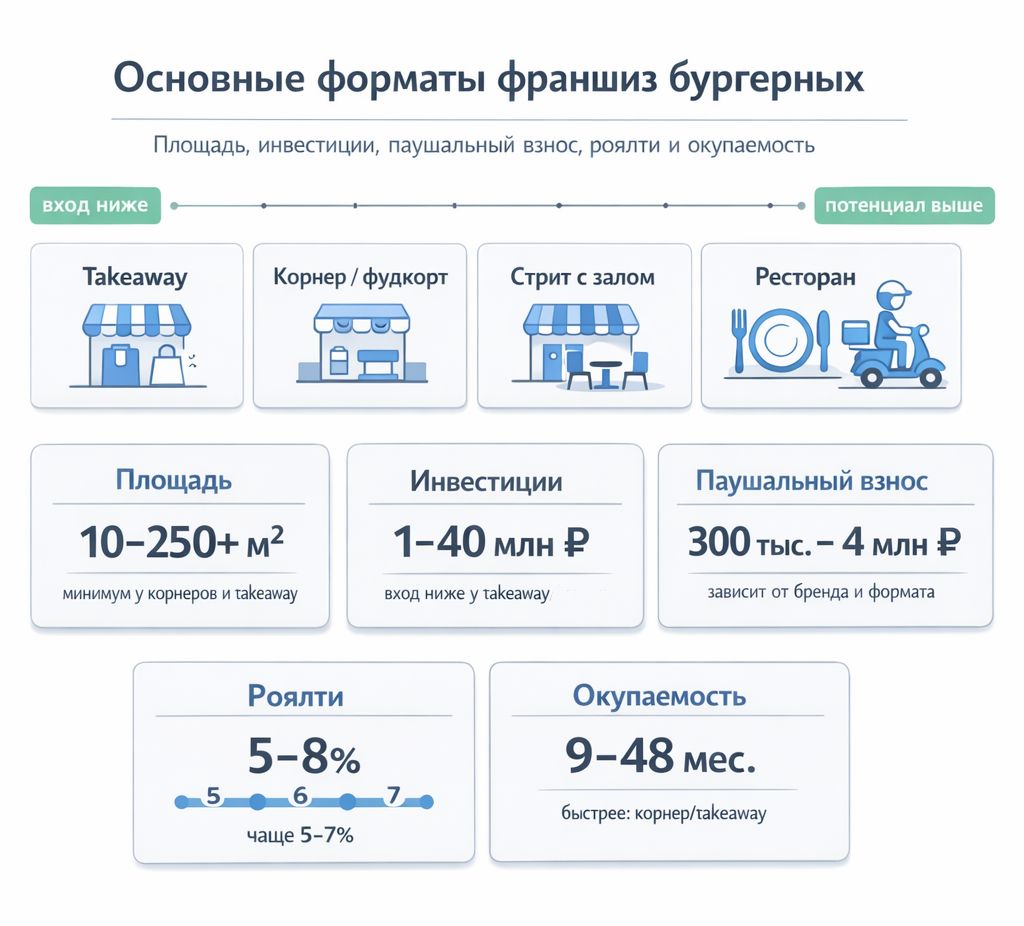 Какие форматы бургерной по франшизе существуют