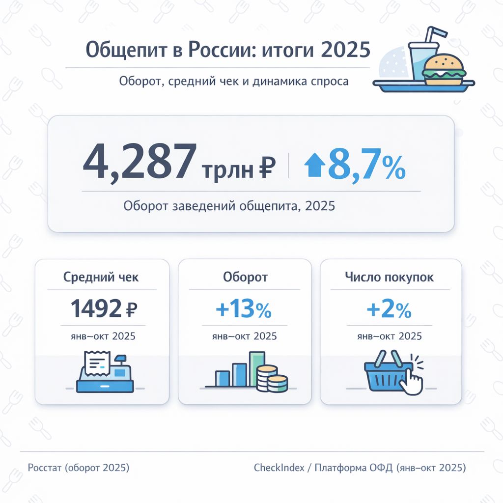 По данным Росстата, оборот общепита в 2025 году вырос на 8,7% и составил около 4,287 трлн руб, однако значительная часть роста – это эффект повышения цен и среднего чека, а не только расширение аудитории.