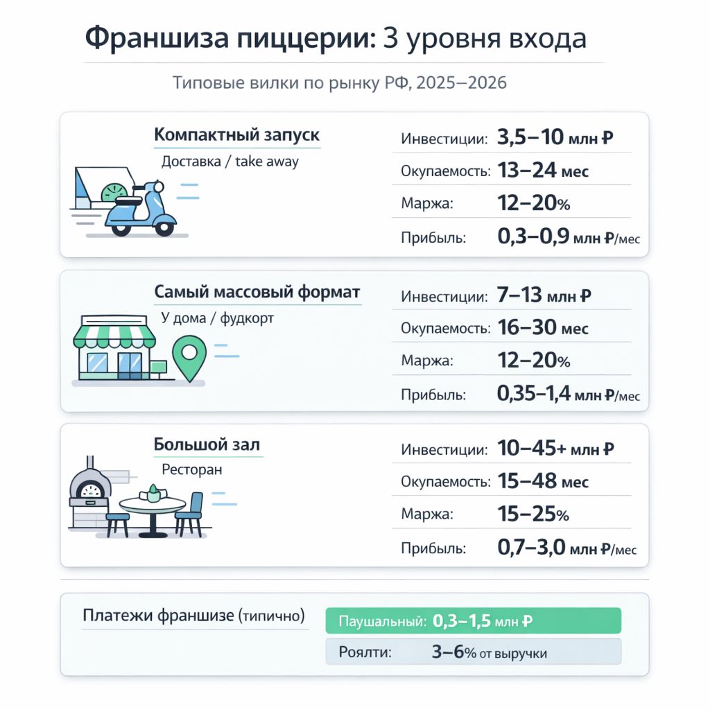 Ниже – обзор рынка франчайзинга пиццерий, ключевые форматы и ориентиры по условиям.