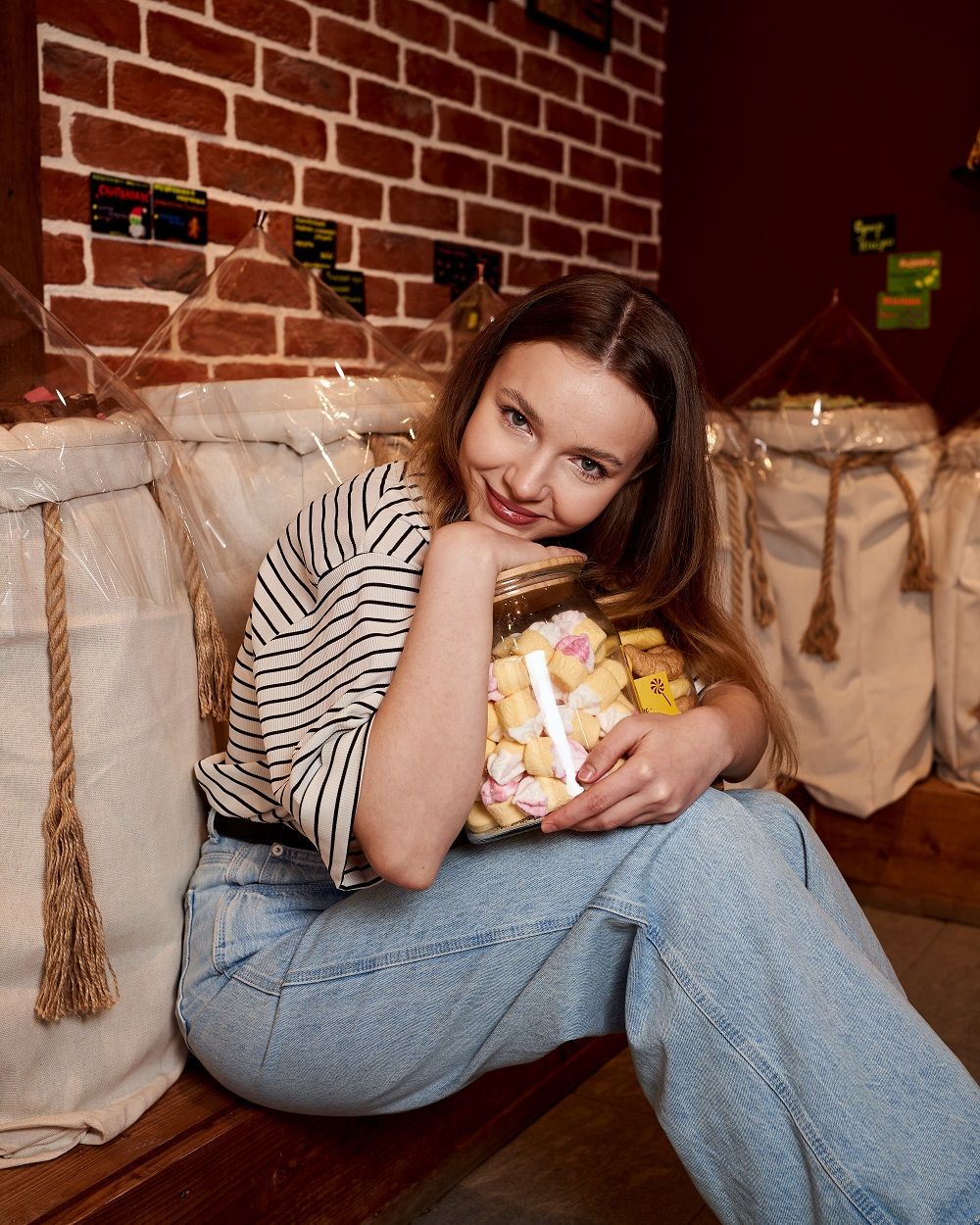 ⭐ Главный продукт — сладости на развес. Покупатель сам набирает нужное количество и оплачивает только вес. Такая модель делает покупку простой, удобной и эмоциональной.