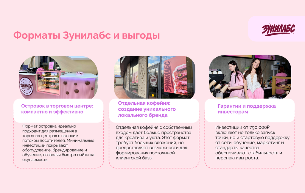 Островок ЗУНИЛАБС - это место, у которого всегда кипит жизнь. Место, куда приходят за настроением и тем самым знаменитым двойным напитком, о котором говорит весь город. Это не просто кофейня — это готовый бизнес, который мы запускаем вместе с вами, гарантируя результат.